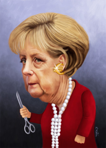 As críticas da imprensa à chanceler Ângela Merkel são recorrentes, ao ponto de apareceram muitas caricaturas suas nos jornais como apareciam de G.W. Bush quando as suas decisões extremistas eram tomadas. A mulher mais poderosa do planeta, segundo a revista Forbes, tem feito muitas críticas aos países latinos e, também, a Portugal rotulando-os de preguiçosos, o que levou o atual executivo de Pedro Passos Coelho, sob esta pressão externa, a reduzir o número de feriados. Só que a falta de solidariedade da Chanceler em relação a uma estratégia comum europeia tem gerado desconfianças mútuas levando os países europeus a dizerem que estão em melhor situação que o vizinho (Portugal está melhor que a Grécia, a Irlanda está melhor que Portugal, a Itália está melhor que a Irlanda, etc).