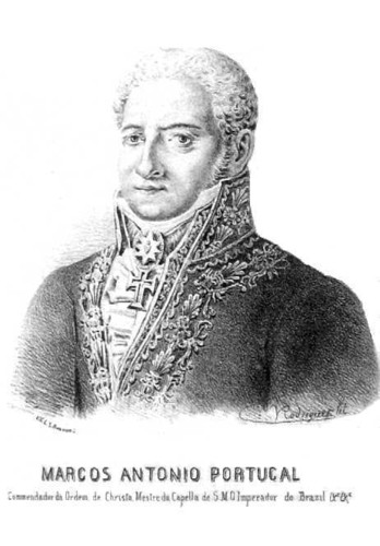 Marcos António da Fonseca Portugal (1762-1830) teve uma vida bem mais longa e ligada a alguns acontecimentos marcantes da História de Portugal. Adquiriu como compositor e organista um grande prestígio internacional. Aos 21 anos tornou-se compositor e organista da Sé Patriarcal de Lisboa. A Corte Portuguesa encomendou-lhe algumas obras religiosas para serem exibidas no Palácio Real de Queluz e na Basílica de Mafra. Pela fama alcançada na Corte Portuguesa conseguiu uma bolsa de estudo para Itália. Assim, durante oito anos, foi estrangeirado nesse país, tendo criado várias óperas que foram exibidas em teatros célebres de Florença, Veneza e Milão.